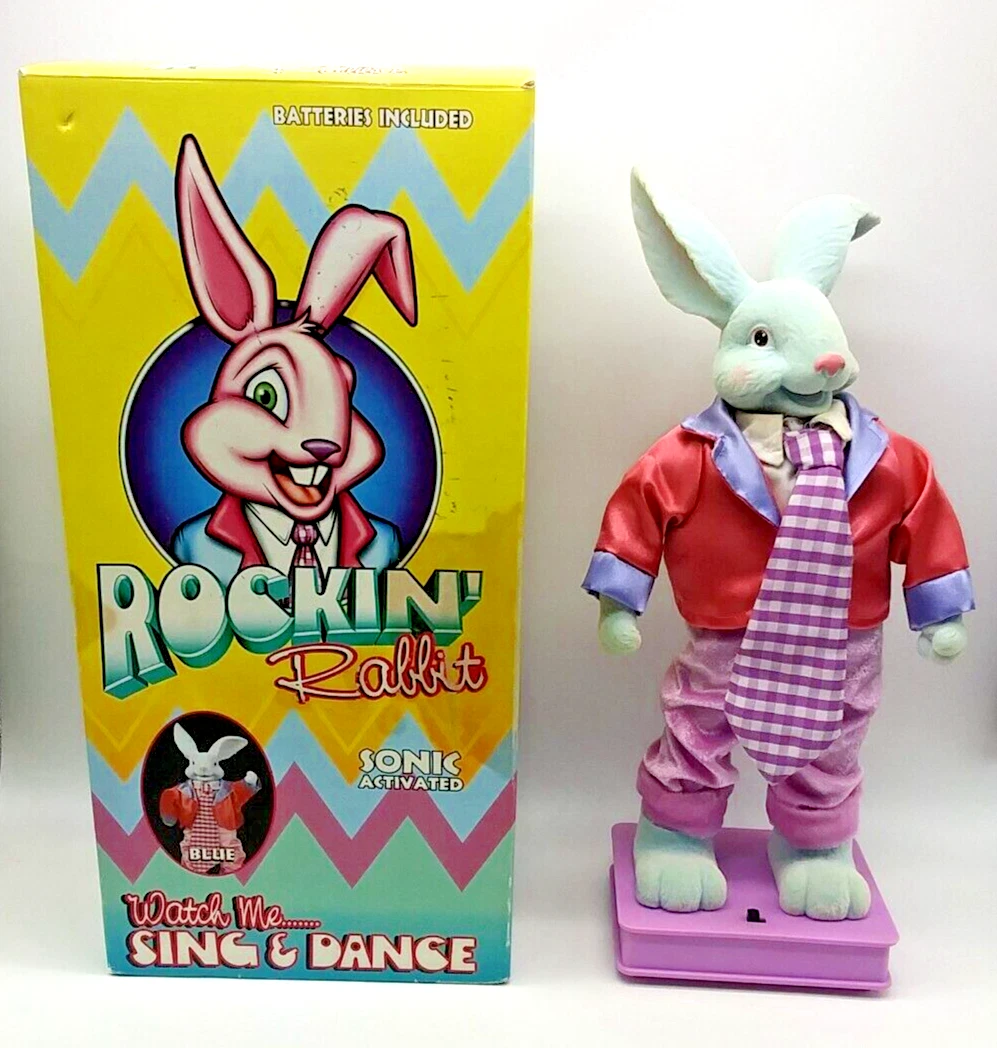 Vtg 1999 Novelty Inc Rockin Rabbit Blue Does Not Dance With Box Easter Bunny Ebay